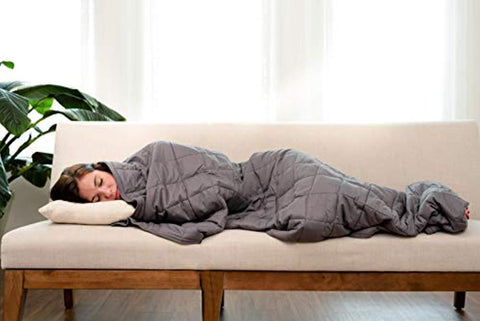 • SOFT LUXURIOUS COTTON - If you close your eyes while snuggling your blanket, (and we hope you do!) you might believe you've been whisked away to a five star resort. Your weighted blanket is made from super soft hotel quality 100% cotton. No need for a duvet, your blanket is soft right away.
