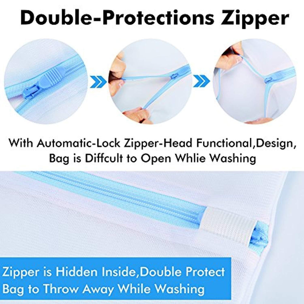 • 【Auto-Lock Zipper Laundry Bag】- With automatic zipper-head lock design, plus the side-cover protection to avoid the laundry bag be opened while washing.Protect your delicates from tangling, snagging, or pulling in washer or dryer