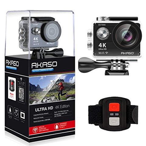 • 100 feet waterproof camera. AKASO EK7000 is designed to withstand extreme environments, together with durable waterproof case. With the accessories, transform it for indoor and outdoor activities.