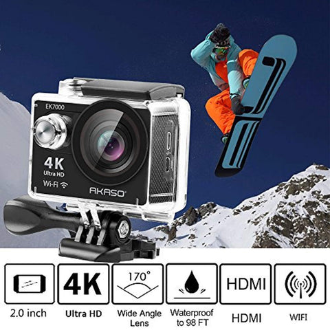 AKASO EK7000 4K WiFi Sports Action Camera Ultra HD Waterproof DV Camcorder 12MP 170 Degree Wide Angle