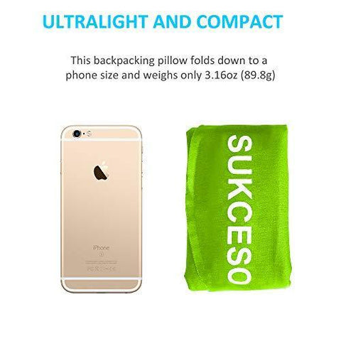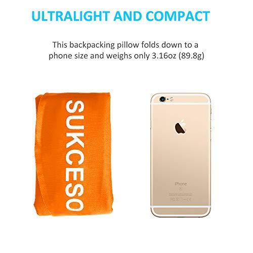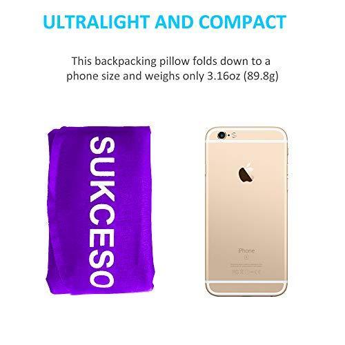 [ULTRALIGHT AND COMPACT] Say goodbye to bulky camping pillows. This backpacking pillow folds down to 5x2x2 inches and weighs only 3.16 oz (89.8g). That’s smaller than a soda can! You can carry it in your backpack or pocket for easy access anywhere.