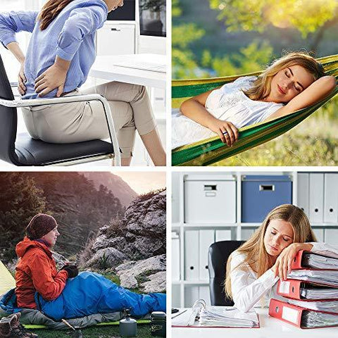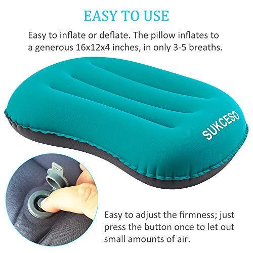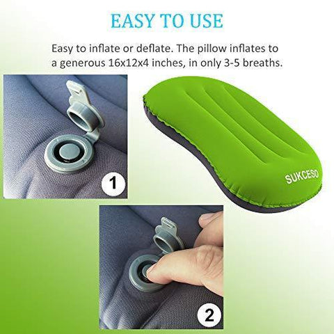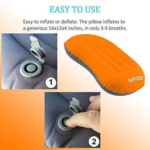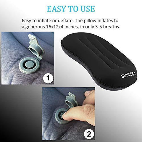 [EASY TO USE] With the simple click of a button, the pillow inflates to a generous 18x12x4 inches, in only 3-5 breaths. It’s easy to inflate or deflate and it provides comfortable head or lumbar support. Be sure to pack it alongside your sleeping bag, hammock, tent, and backpack.