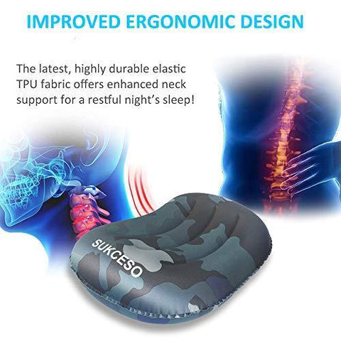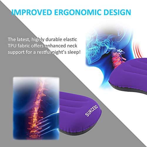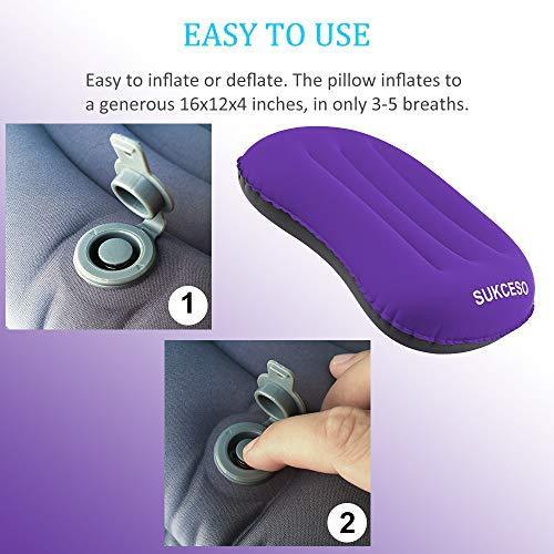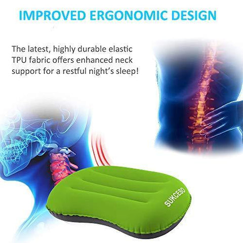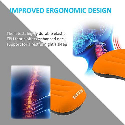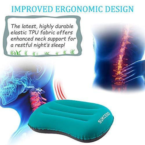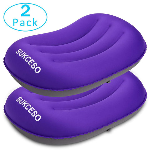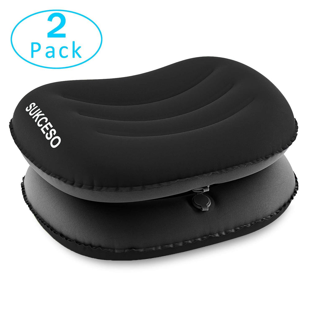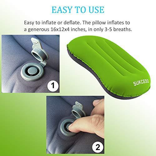 [2-PACK] Ultralight Inflatable Camping Pillow - Compressible, Compact, Comfortable for Sleeping While Traveling, Hiking, or Backpacking. Ergonomic Inflating Camping Pillows for Neck and Lumbar Support