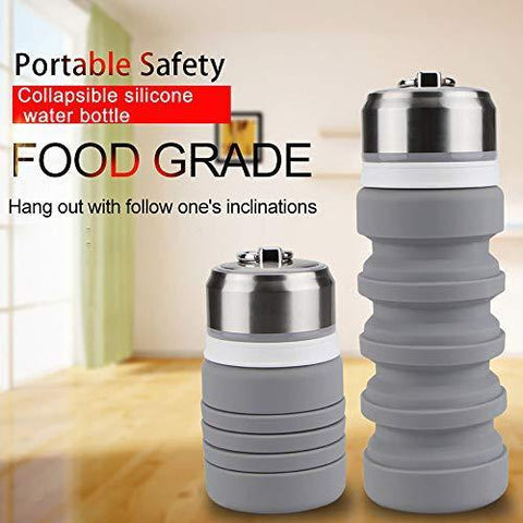 AINAAN Collapsible Water Bottle, Silicone Folding Kettle,Portable-for Outdoor/Camping/Hiking/Office-400 mL | 13.5 Oz, 2019, Gray