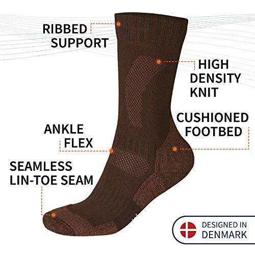 MERINO WOOL FOR COMFORTABLE & DRY FEET: The natural heating and cooling properties of the merino wool ensure that your feet will be warm in the winter and fresh in the summer. Ventilation mesh lanes wick away sweat. Cushioning and padding reduce the risk of getting blisters, aching and jarring shocks