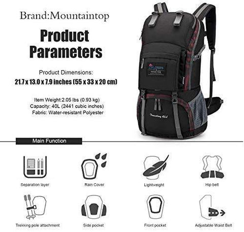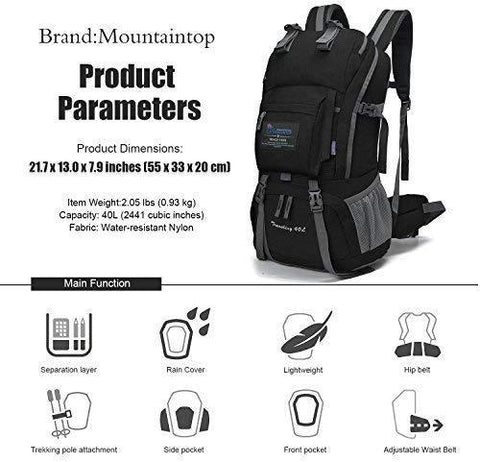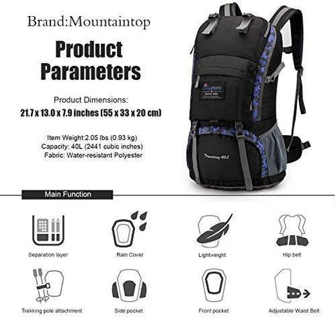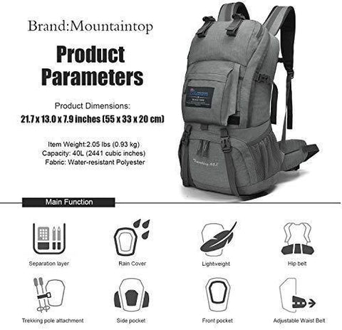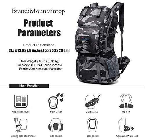 MOUNTAINTOP 40L Hiking Backpack for Outdoor Camping