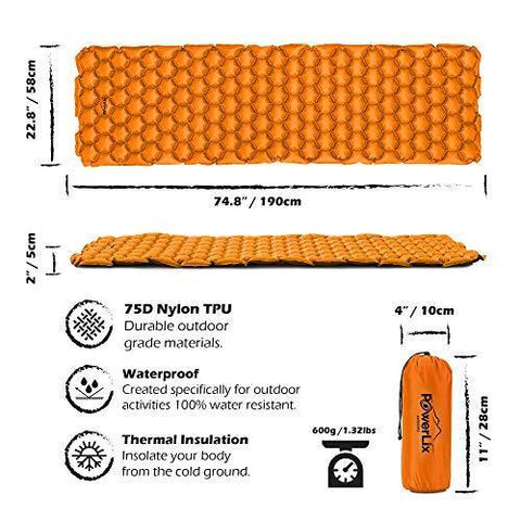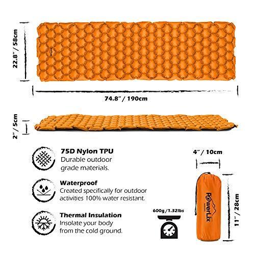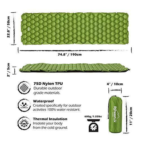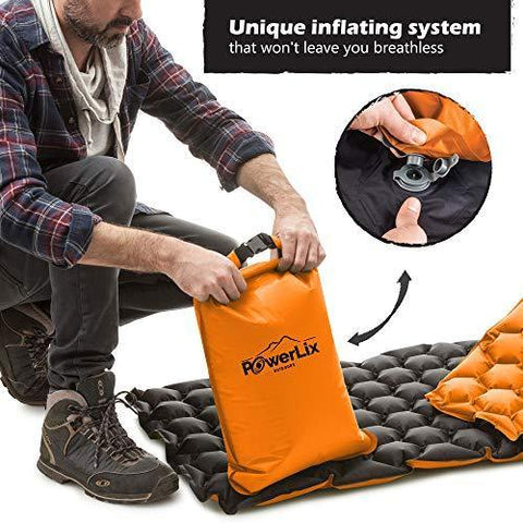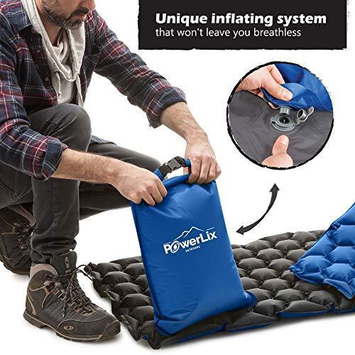 POWERLIX Sleeping Pad - Ultralight Inflatable Sleeping Mat, Ultimate for Camping, Backpacking, Hiking - Airpad, Inflating Bag, Carry Bag, Repair Kit - Compact & Lightweight Air Mattress