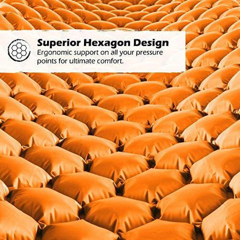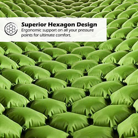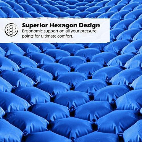 REJUVENATE YOUR BODY: Our revolutionary hexagon design is made special with body mapping technology. The hexagon air cells ergonomically support all of your pressure points, giving you superior support and comfort all night long, no matter how you sleep! The mat is also a camping luxury, being comfortable yet lightweight. It rolls up small, making it effortless to carry around. The pads come with a 2-color design, with 3 combination choices. Just roll the cot over to enjoy the other color.