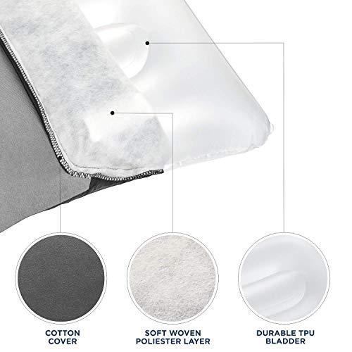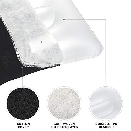 ✅ COMPACT and PORTABLE: the weight and size of inflatable travel pillow is well-balanced - it’s big enough (15 x 12 x 4.5 in ) for a comfortable sleep, yet it only weighs 4oz and won’t make your travel bag heavy.