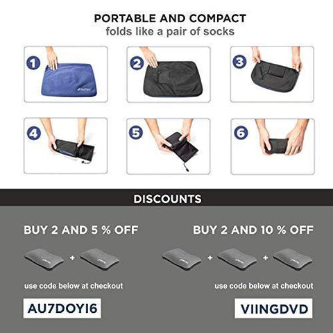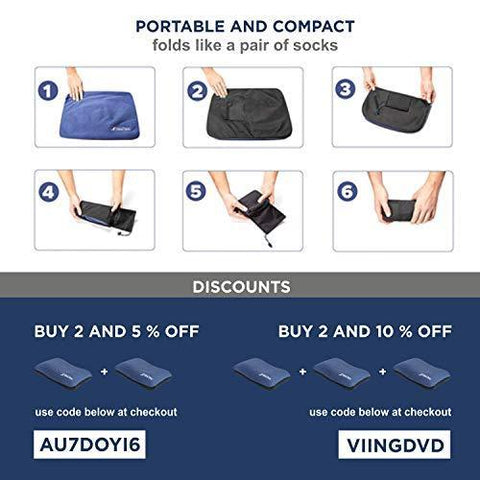 ✅ COMPRESSIBLE and ULTRALIGHT: Fold the outdoor compressible blowup pillow into the bag sewn into it, as if it were a pair of socks. The folded hiking pillow looks like a tube the size of Coke can.