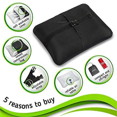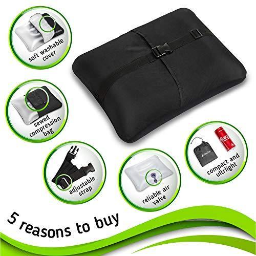 ✅ RELIABLE and EASY to USE: the camp pillow has a reliable valve, which doesn’t let the air escape. It’s is easy to use – you will be able to inflate the backpack pillow with just 3-4 deep breaths.
