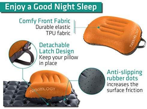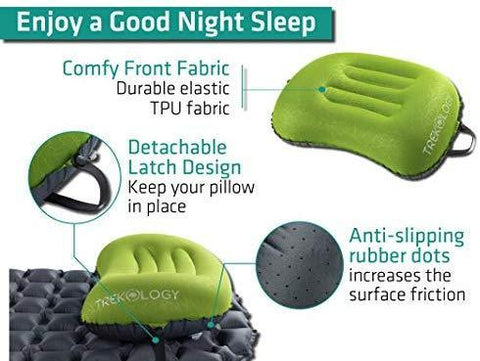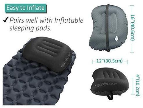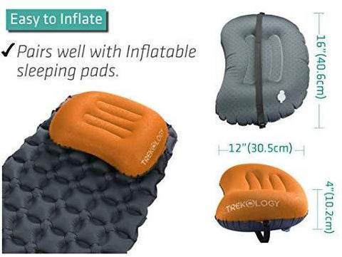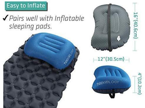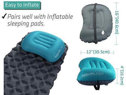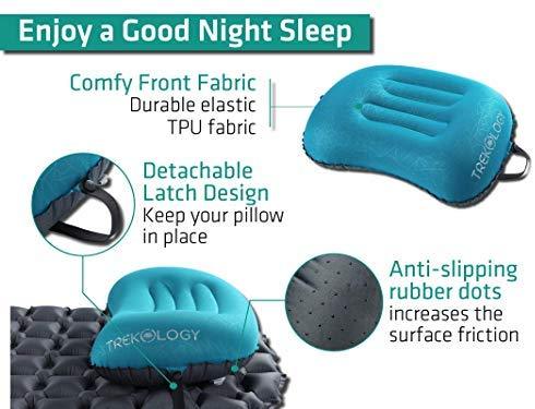 Trekology Ultralight Inflatable Camping Travel Pillow - ALUFT 2.0 Compressible, Compact, Comfortable, Ergonomic Inflating Pillows for Neck & Lumbar Support While Camp, Hiking, Backpacking