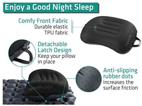 New in 2.0! SLEEP WITHOUT WORRY with OUR PROPITIATORY DOT and LATCH DESIGN - No more slipping off your pillow in the middle of the night! The new Aluft 2.0 pillow back contain rubber anti-slipping dots to increase frictions between your pillow and the sleeping mat. A latch strap pairs well with air inflatable sleeping pads canfurther prevent your pillow from moving around while you sleep. All these features are designed with your ultimate comfort in mind!