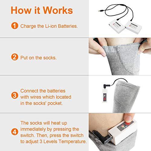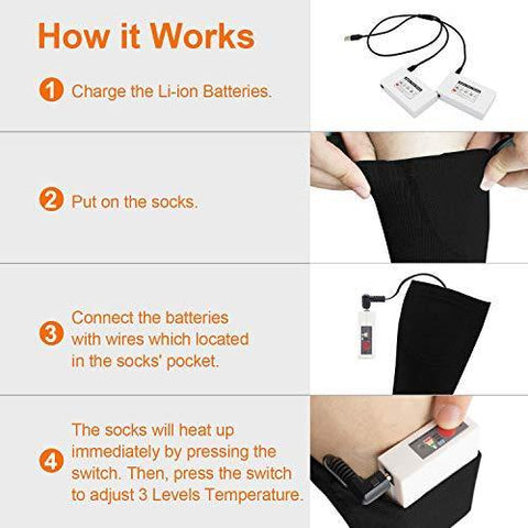 ❄️Money-back satisfaction guarantee: You're covered with our TWO YEARS money-back satisfaction guarantee for your heated socks. Your purchase is fully protected and we back all our customer purchases. Just click "Add to Cart" worry-free with this guarantee and we hope that you will love this electric heated socks.