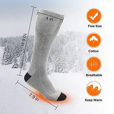 ❄️ Comfortable Heated Socks for Men Women: The heated socks are made of thick fabric cotton, they’re unbelievably soft and comfortable! Free size (US Size 4-12) suitable for most American men and women.