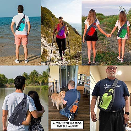 Outdoor Hands-Free Bag or Purse: Water resistant (Color Part) and anti-scratch nylon material and top-quality zippers make sling bag protective and durable for hiking, kayaking, snorkeling, gym, cycling, bike riding, walking, traveling, amusement park and daily use.