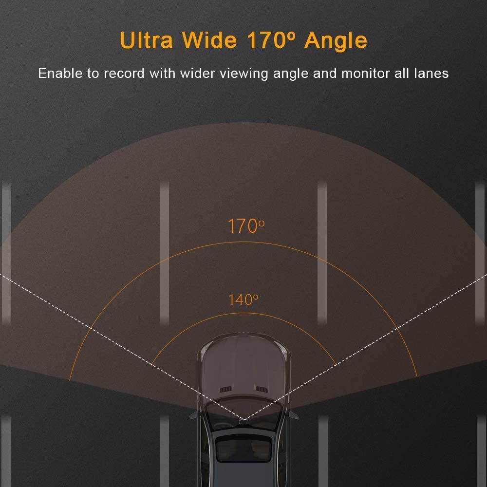 🎁170° WIDE-ANGLE & MOTION DETECTION: 170-degree wide wide angle easily covers 4 lanes.In order to reduce the blind spot, the wide-angle design of the driving recorder is very important. We chose a large wide-angle all-glass lens with a viewing angle of up to 170 degrees, and the intelligent wide-angle image correction is not deformed. Excellent high sensitivity, true and meticulous restoration of the truth of the event.