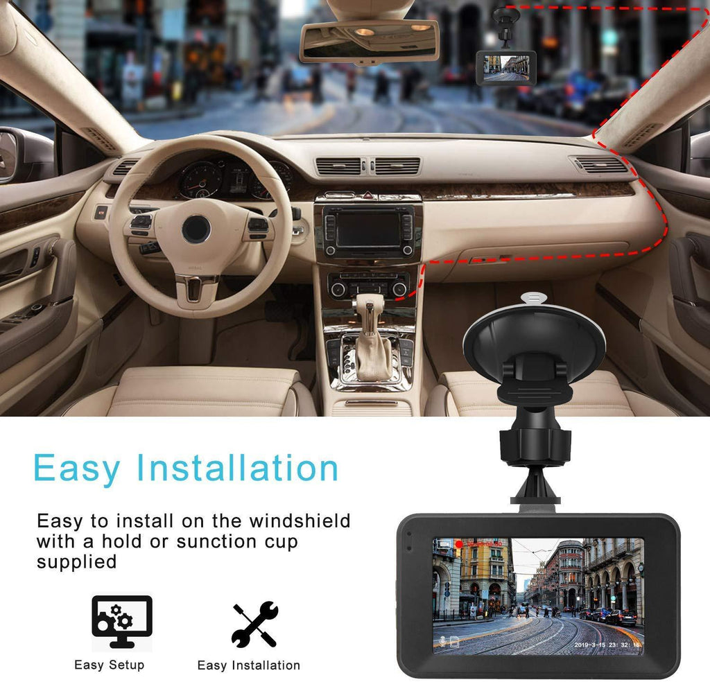 🎁1080P WITH 3 INCH LARGE LCD SCREEN CAR RECORDER: Offer You a Broad Detailed Road Video, 1080P Full-HD Video with a super-wide angle lens captures the whole road in crystal-clear definition. It GREATLY offers you a perfect video evidence in the insurance case increase your sense of Security and necessary indemnification.