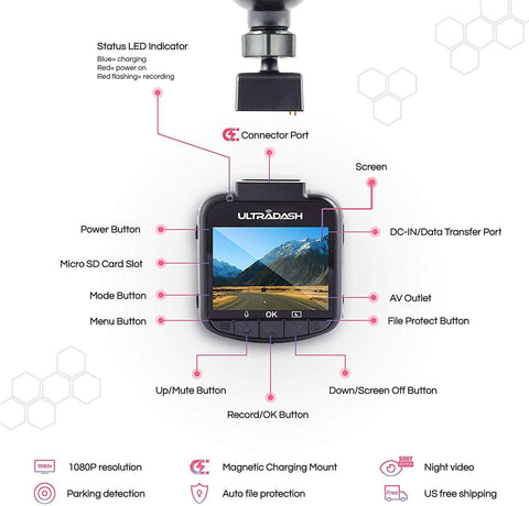 【1080p @30fps Full-HD resolution】 H. 264 mov compression. UltraDash C1 is the combination of the finest quality materials and artistic design in an affordable package.