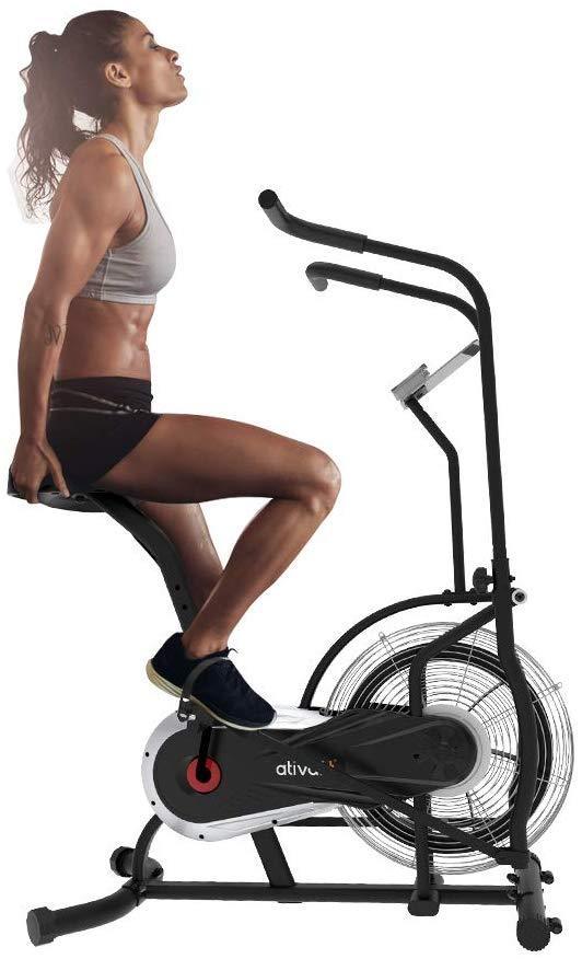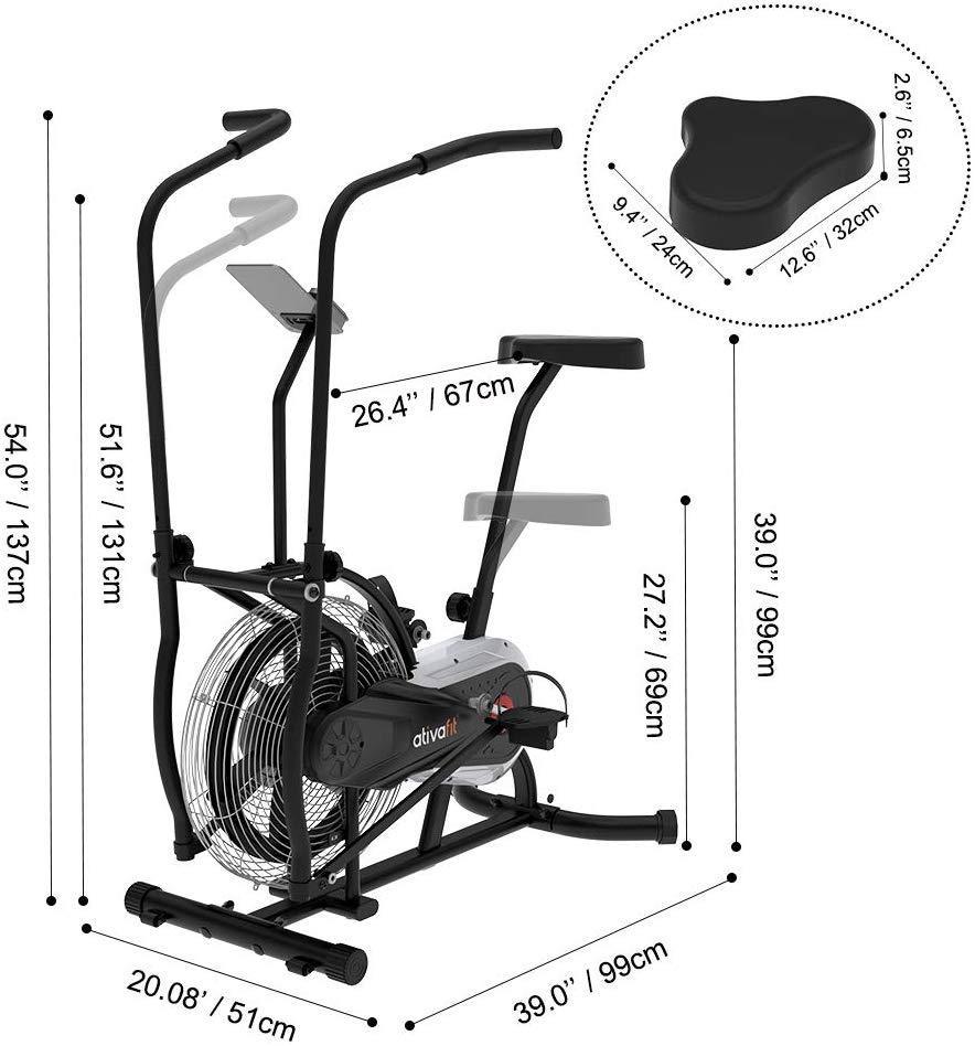 • GYM AT HOME - Ativafit Fan Bike is easy to assemble and to move around the house since it has transport wheels for convenient mobility. Dimensions: 54” x 20.8” x 39”