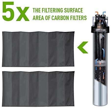• Removes chlorine taste and odor, dirt and cloudiness, mold and algae and particles 1/2-Micron and larger in size