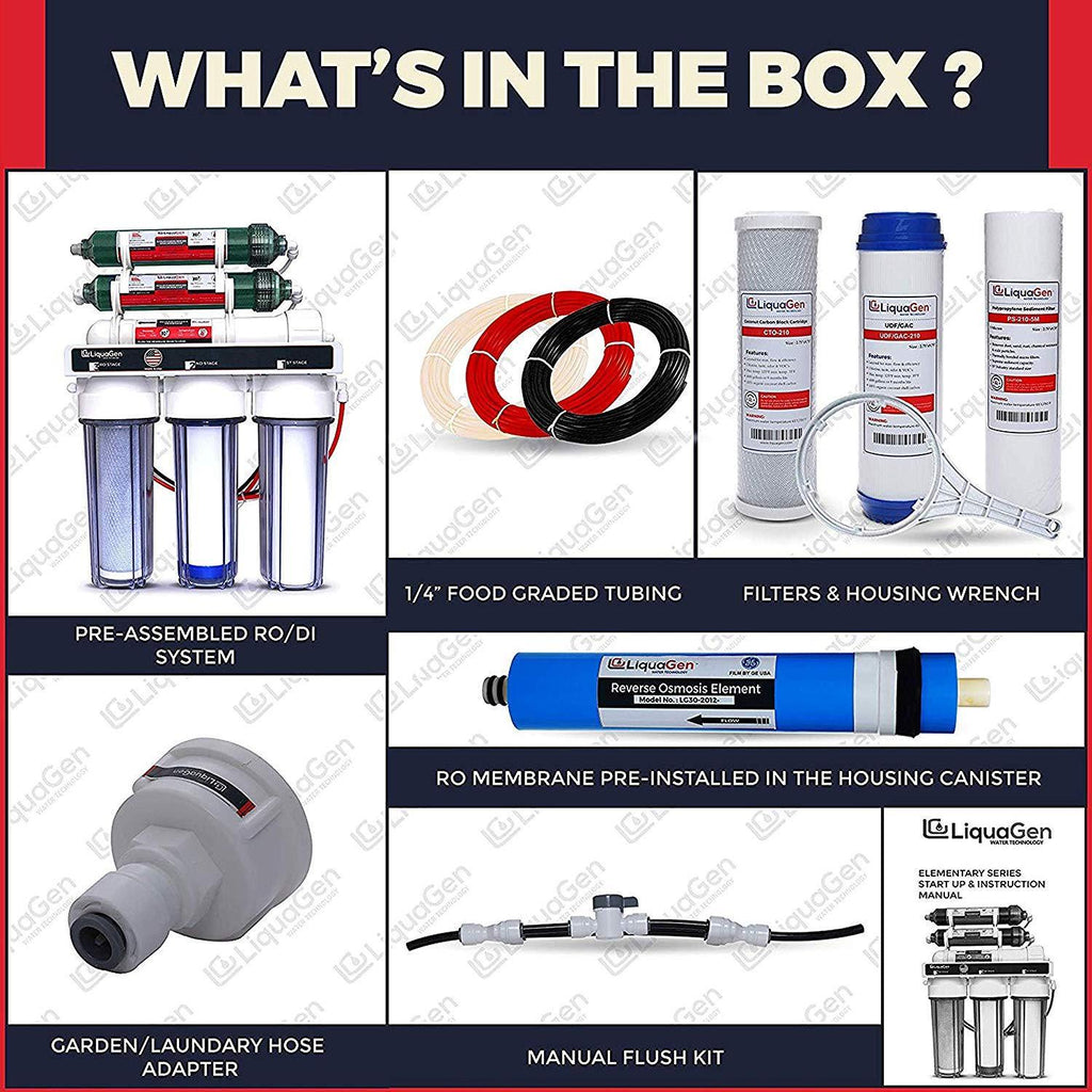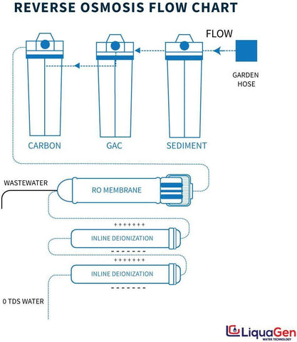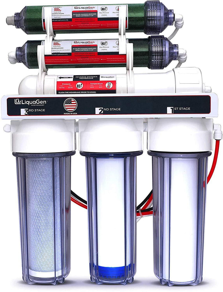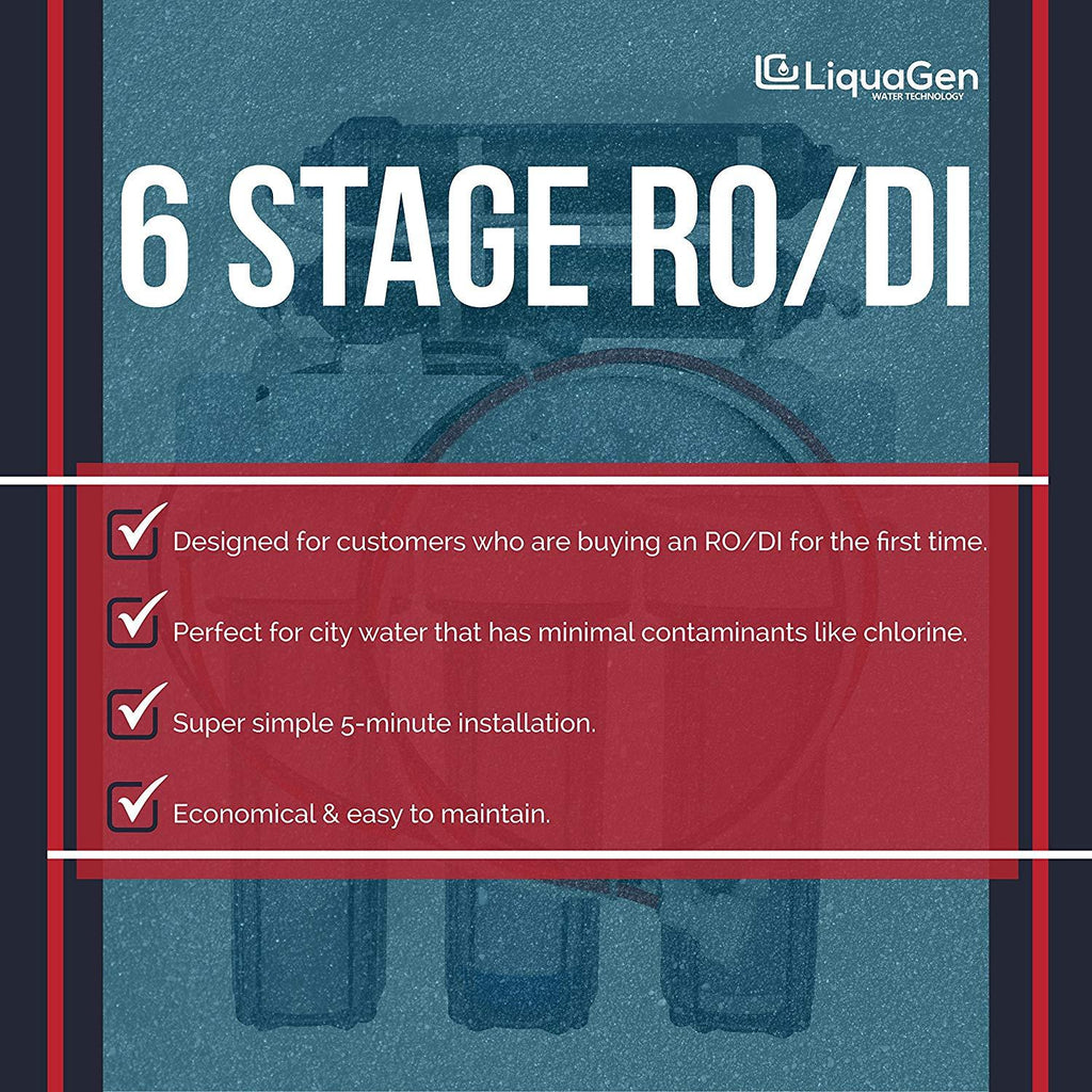LiquaGen - 6-Stage Reverse Osmosis + Deionization Water Filtration System | 0 TDS - 100 GPD