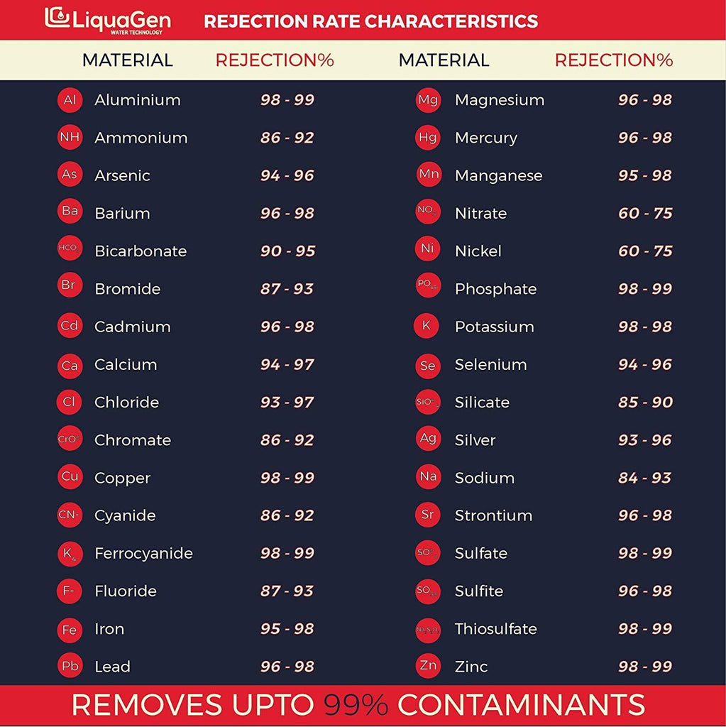 • High rejection reverse Osmosis (RO) Membrane Capacity : 100 Gallons Per Day (GPD). Film by GE USA.