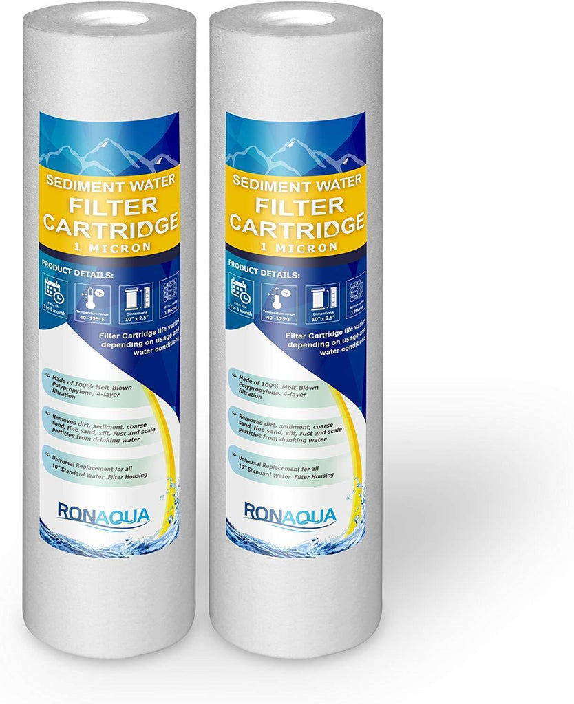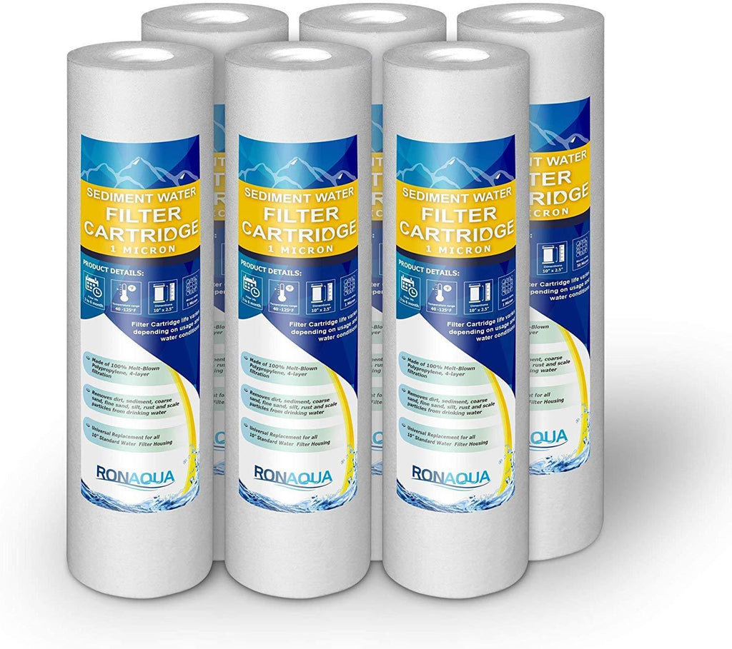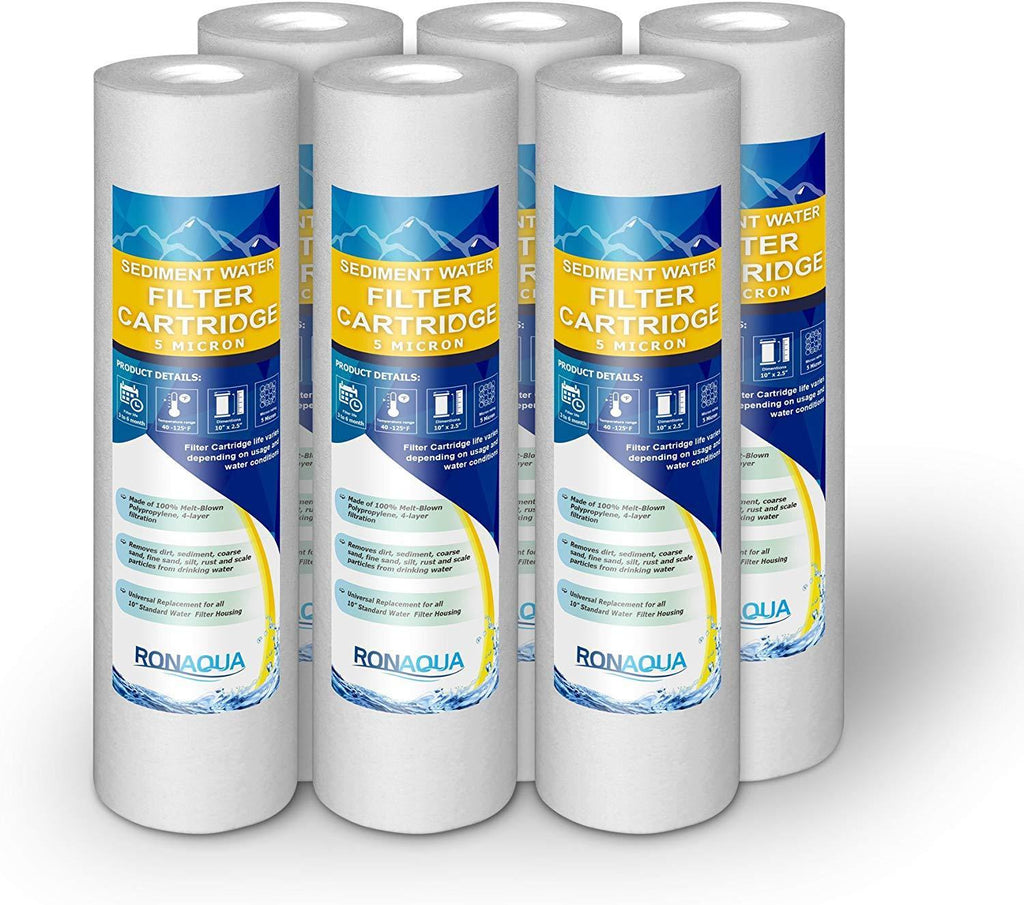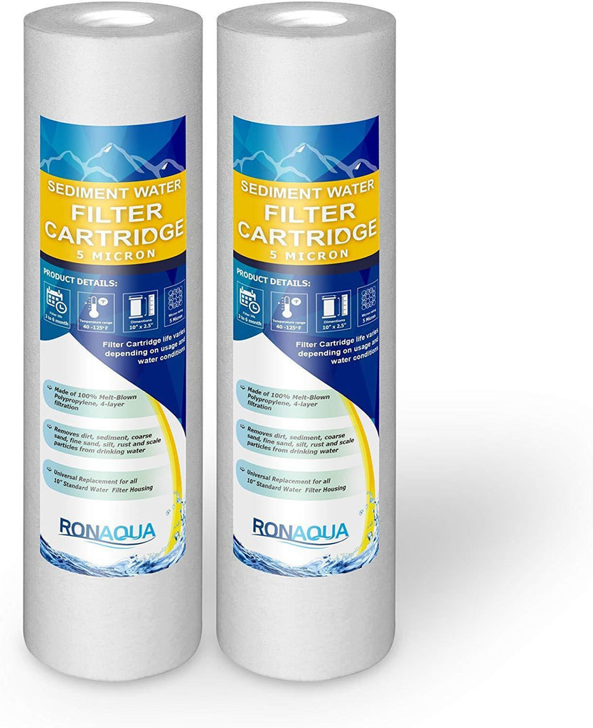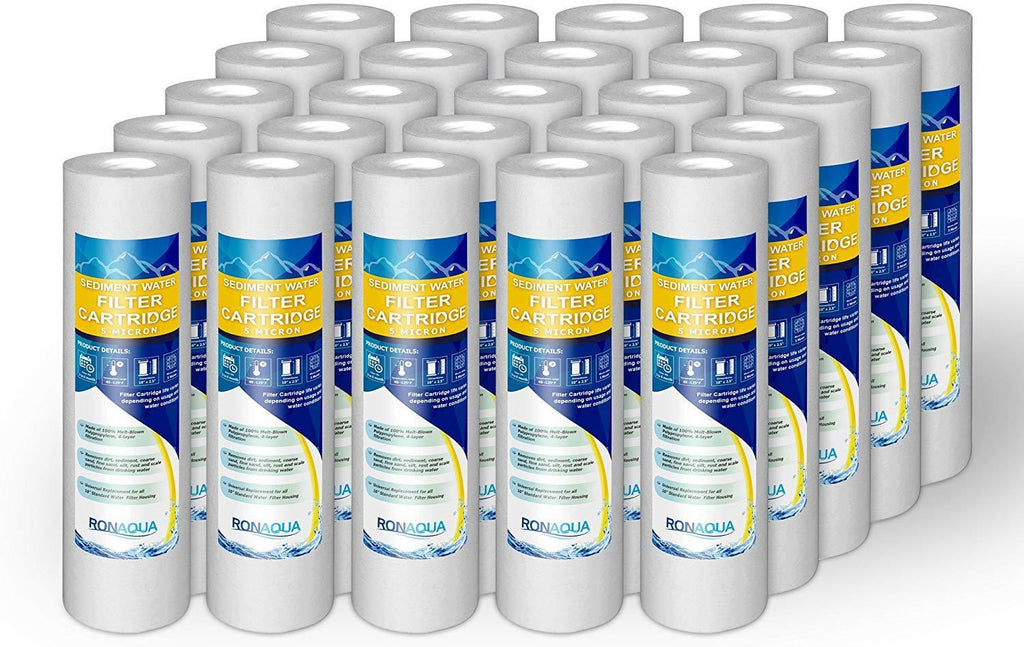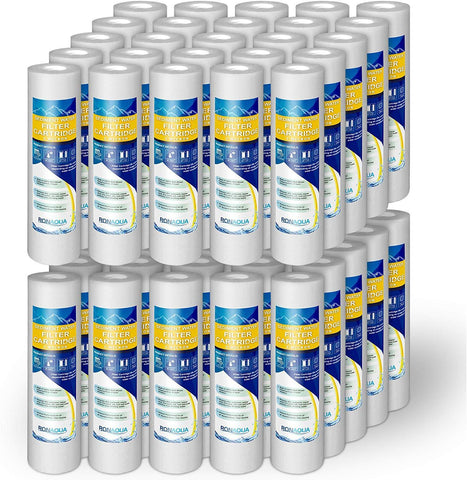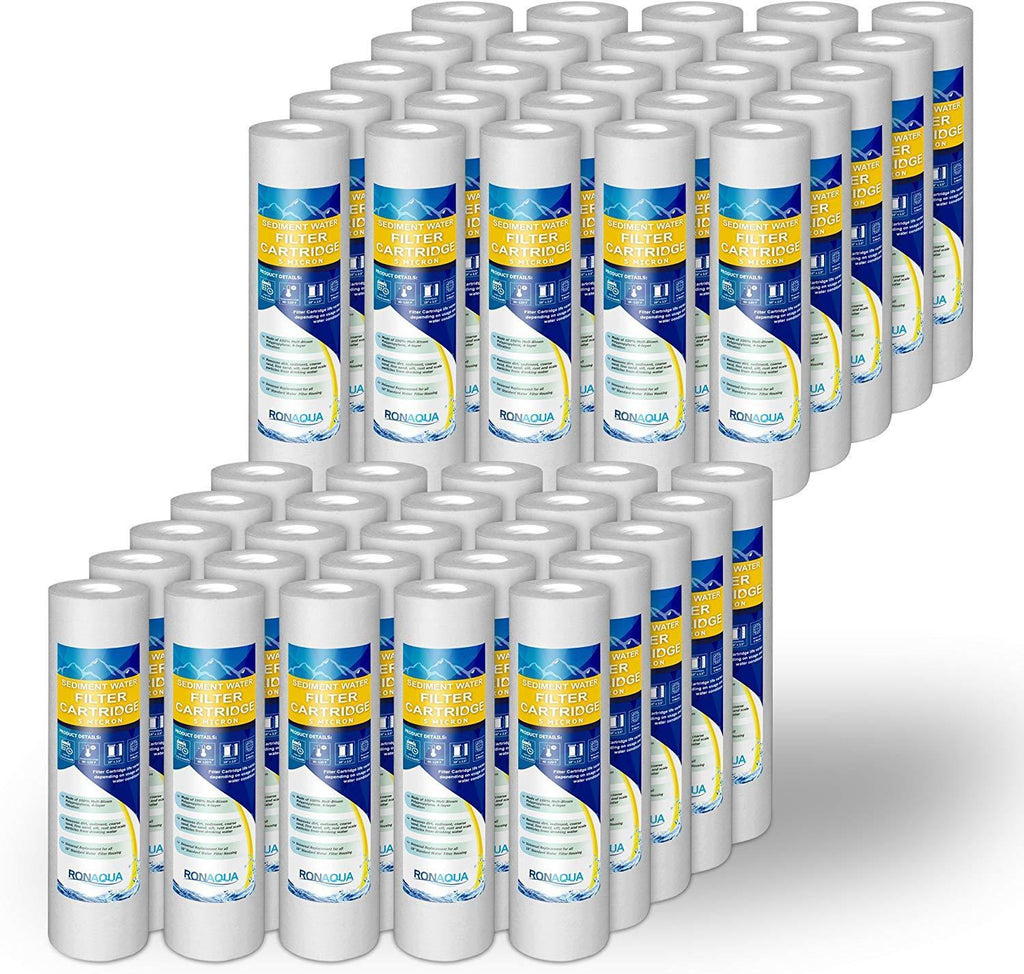 Sediment Water Filter Cartridge by Ronaqua 10"x 2.5", Four Layers of Filtration, Removes Sand, Dirt, Silt, Rust, made from Polypropylene (50 Pack, 5 Microns)