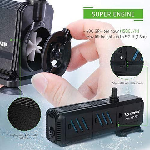 【Wide Application】: High Performance Energy-efficient Pumps designed for use in Ponds, Fountains, Waterfalls, Hydroponic systems, Irrigation systems and water features.