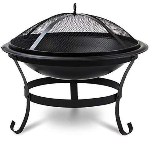 Sorbus Fire Pit Bowl 22", Includes Mesh Cover, Log Grate, Curved Legs, and Poker Tool, Great BBQ Grill for Outdoor Patio, Backyard, Camping, Picnic, Bonfire, etc (Black Fire Pit Bowl 22”)