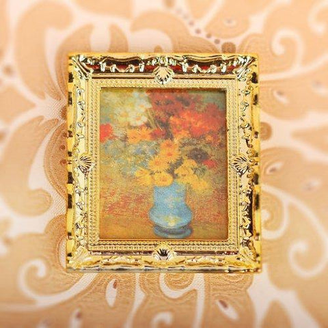 This plastic golden frame with print of oil painting model is well designed for 1: 12 dollhouse. The flower scene can make it attractive and necessary for your dollhouse to play all-day long house-hold companion. This model is a unique collection for dollhouse.