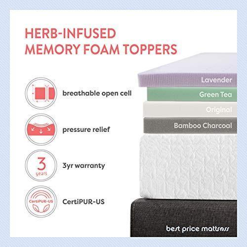 Best Price Mattress 2 Inch Memory Foam Bed Topper with with Lavender Cooling Mattress Pad, Twin Size,