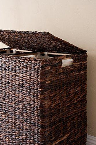 BirdRock Home Oversized Divided Hamper with Liners (Espresso) | Made of Natural Woven Abaca Fiber | Organize Laundry | Cut-Out Handles for Easy Transport | Includes 2 Machine Washable Canvas Liners