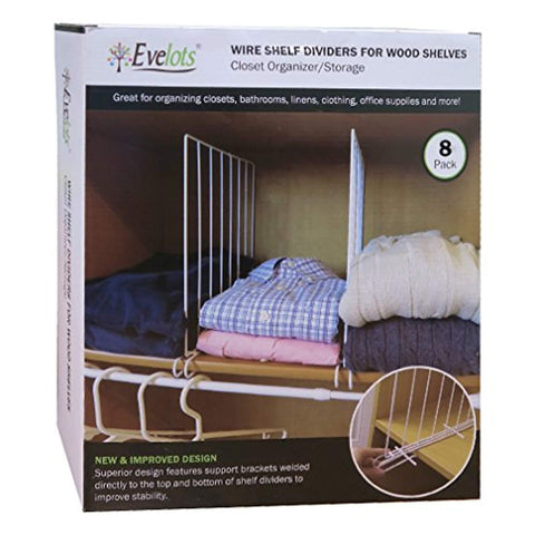 Evelots Closet Wood Shelf Divider-New & Improved-Separator-Easy Clip-Steel-Set/8