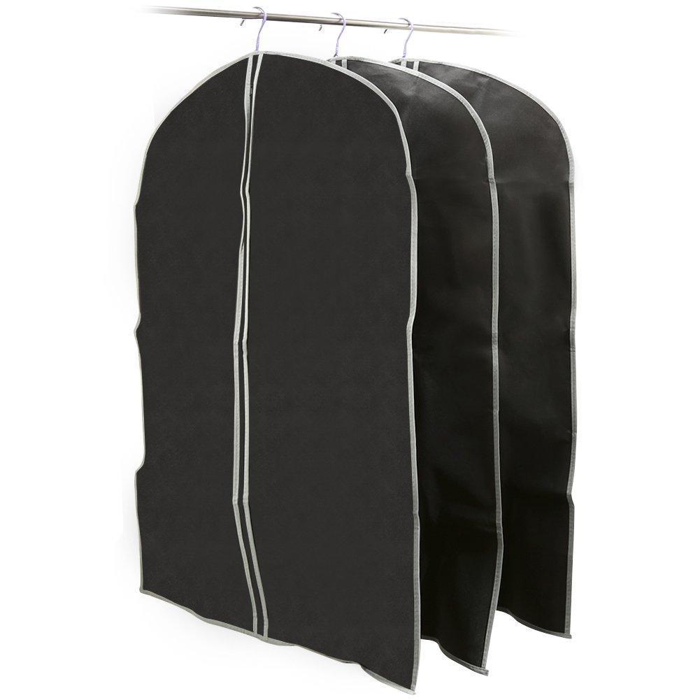 EZOWare 3 Pack Garment Bags, Black Breathable Garment Suit Dress Jacket Coat Shirt Dust Cover Bag - Set of 3