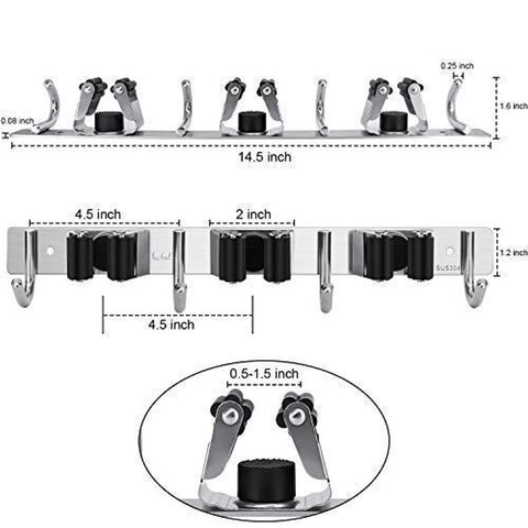 šćINDOORS & OUTDOORS ć- Tidy up your broom, mop, rakes, tools and more! Perfect for the kitchen, closet, garage, office, great for commercial use, and thanks to the weatherproof design, this holder even works outdoors or on the shed for your garden tools!