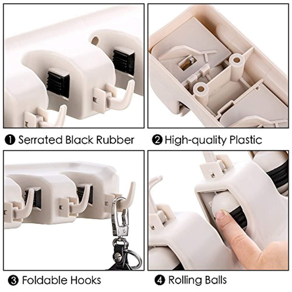 1.Sturdy and Strong: The mop and broom holder organizer is made of high-quality plastic. Each rolling ball holds up to 7-12 pounds of weight. So it can organize most of tools of your home or garden. Imillet mop holder grip everything tightly and securely.