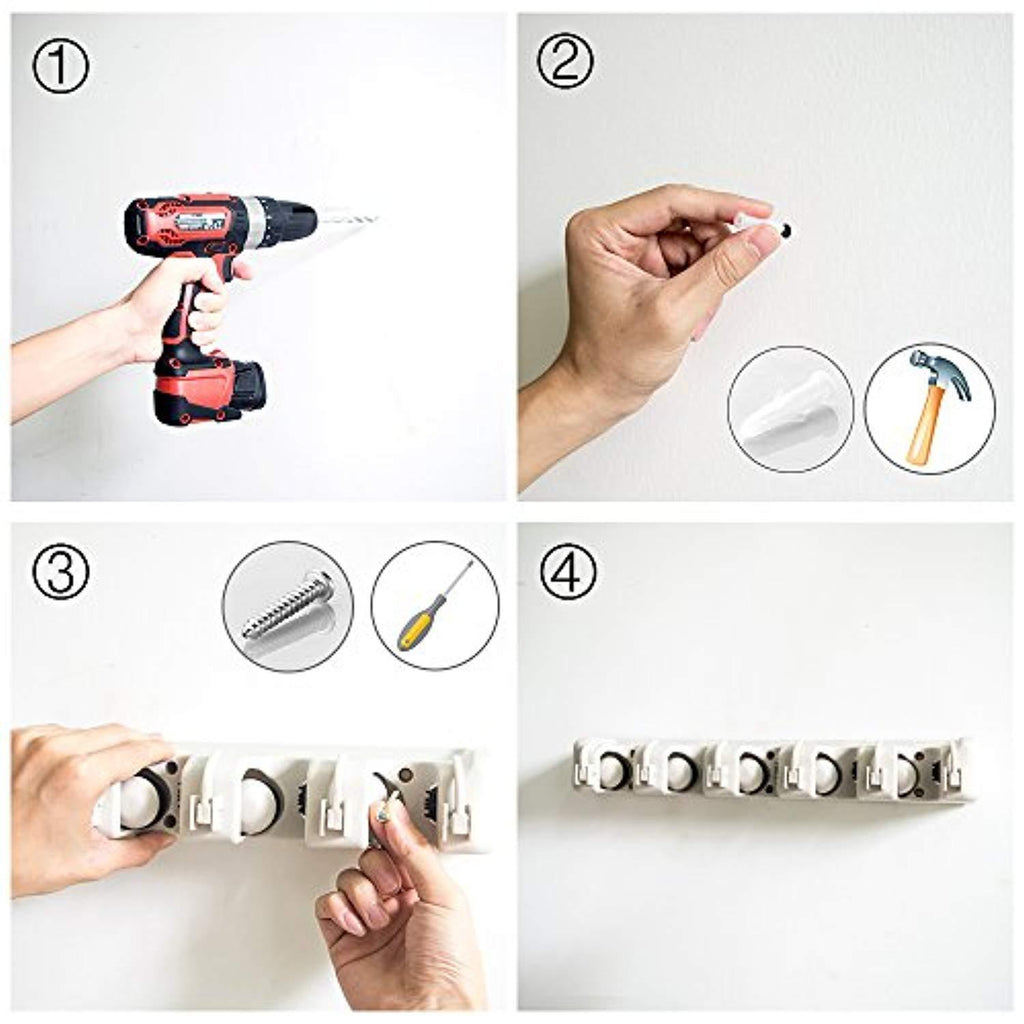 2.Easy to install : With all the screws and required to install with the broom holder and clear step-by-step instructions, even the most stupid ones can be easily installed in minutes! Just lift the handle and the rolling ball will automatically adjust to the thickness of each handle and hold it firmly. So don't worry about the tool falling to the ground.