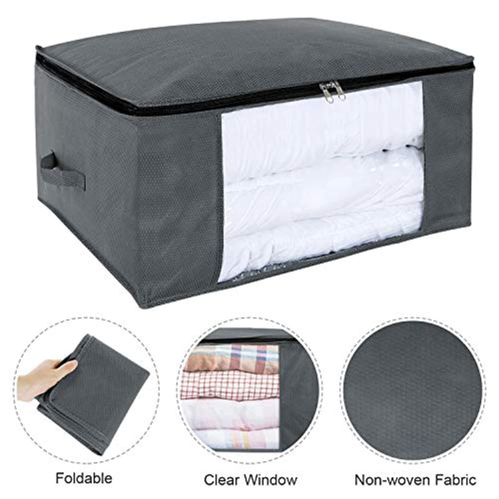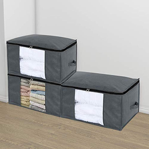 Lifewit Set of 3 Large Clothes Storage Bag for Comforters, Blankets, Bedding, Pillow, Breathable Foldable Closet Organizer with Clear Window, Grey