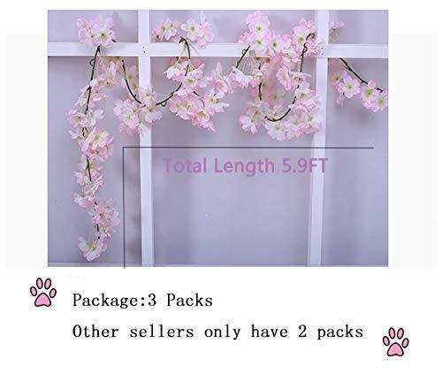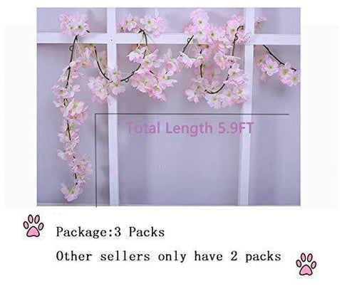 Total length for each pack: 5.9FT, flowers measures 3.2 inches in diameter, 144pcs a cherry blossom (flowers may be fall off in transit, you need to manually install it back.)