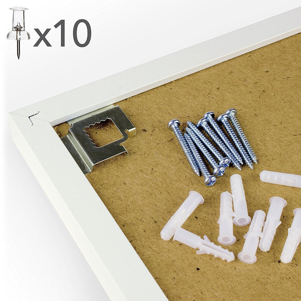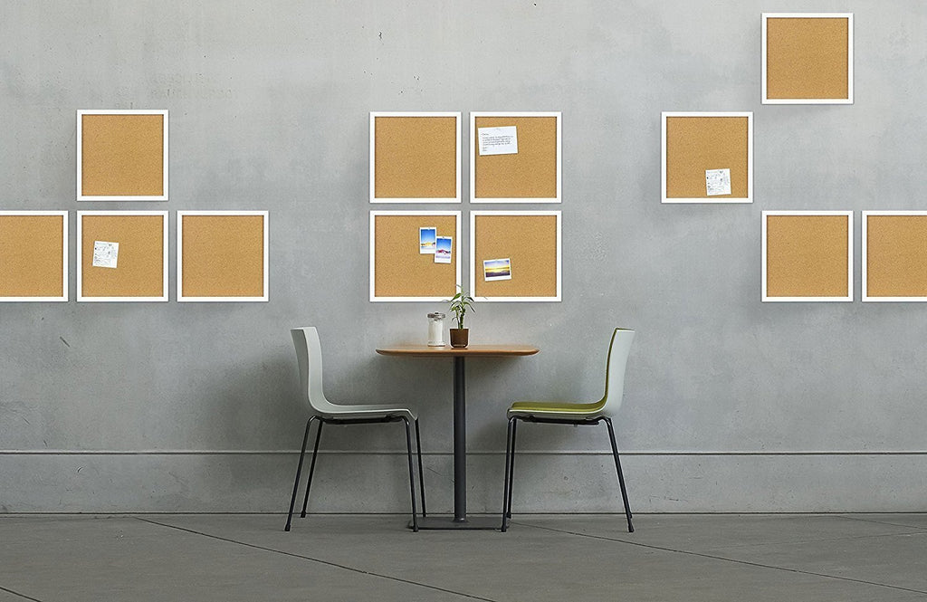 ORGANIZATION MADE BEAUTIFUL - Classic white MDF-composite frame is an elegant addition to an office space or home. Premium fine grain cork stays put and maintains shape and texture—no chips! Stagger up to 4 cork boards for a true gallery feel.