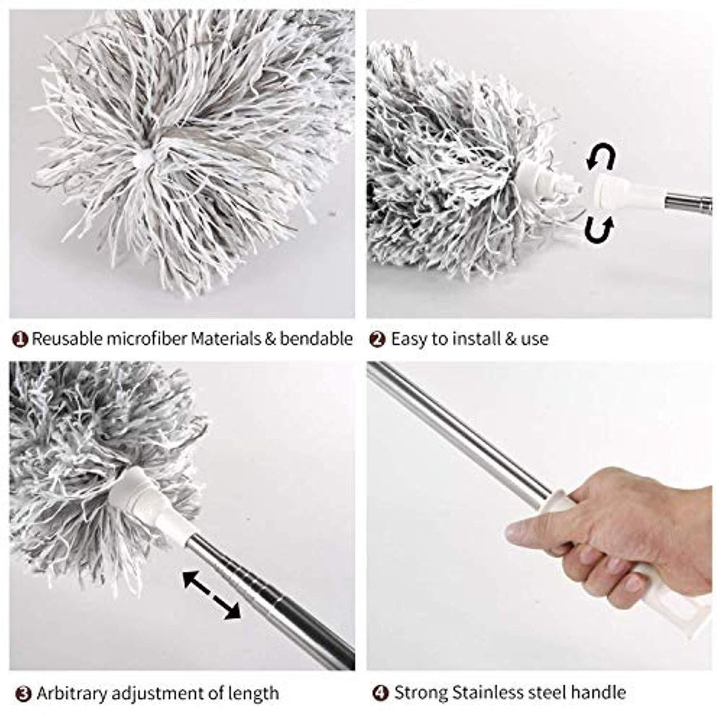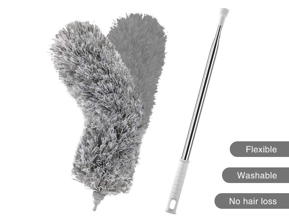 💦Washable Dusters Head - Microfiber duster is easy to keep clean. Dusters head is detachable, simply slide the microfiber top off the duster core and hand wash with water or machine washable!