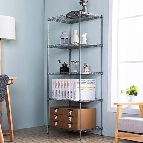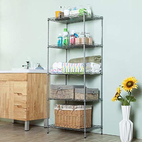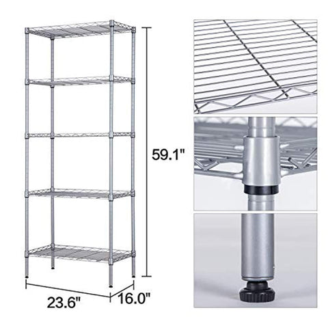 SINGAYE Storage Shelves 5 Tier Shelving Units Heavy Duty Metal Shelves Adjustable Garage Shelf Storage Rack Organizer, 23.6’’ W x 16’’ D x 59.1’’ H (Silver)