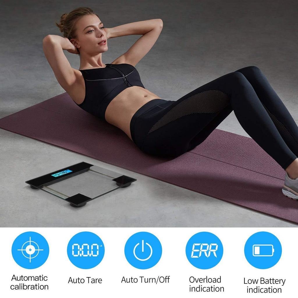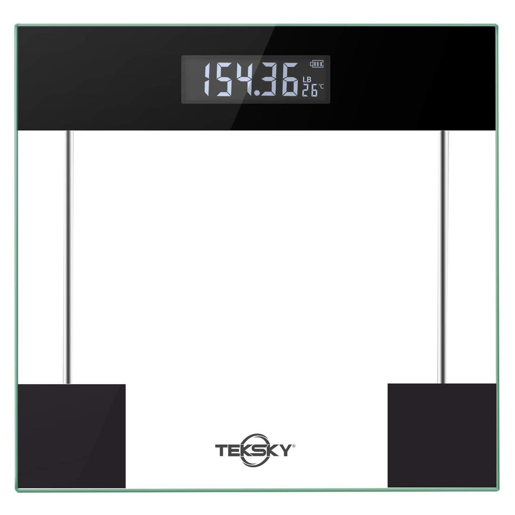 TekSky Digital Body Weight Scale with Step-On Technology - High Precision - Body Tape Measure - 6mm Tempered Glass (MAX 400 lbs. Elegant Black)