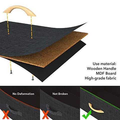 Stable While Lightweight: Fabric drawer and strong steel frame with cross supprt bar behind create a sturdy and lightweight dresser, wooden handles attached on forward MDF board are more durable and easy-pull even under full load.