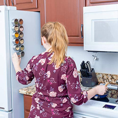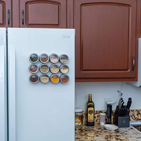 MAKES LIFE EASIER how many times have you had to take all your spice containers off your cabinet just so you can get ONE?! This is not going to be a problem ever again! Place our magnetic tins at your most convenient place. On the side of the stove while you cook or behind your cabinet door and you'll be able to see each one of them and pick the ONE you really need to move.