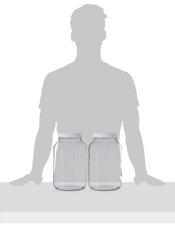 2 Pack - 1 Gallon Mason Jar - Glass Jar Wide Mouth with Airtight Foam Lined Plastic Lid - Safe Mason Jar for Fermenting Kombucha Kefir - Pickling, Storing and Canning - By Kitchentoolz