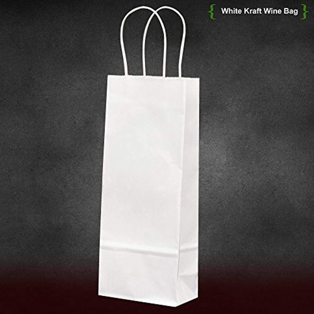 White Kraft Paper Wine Bag - 5.25"Wide 3.25"deep x 13 high (handle not included in overall size)