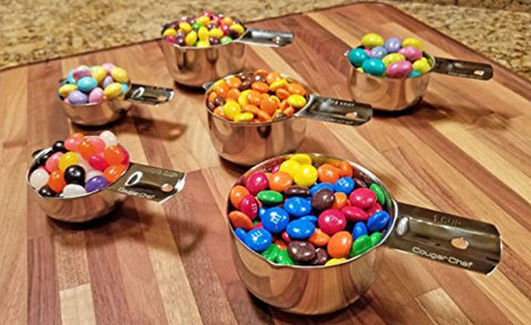 6 Piece Stainless Steel Measuring Cup Set by Cougar Chef - Stackable Measuring Set for Accurate Measuring of Dry and Liquid Ingredients for Cooking and Baking
