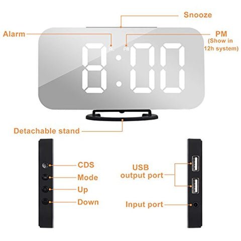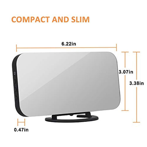 Large Display 6.2 x 3.3 x 0.5 inch, smooth Acrylic mirror surface, bight LED display gives you clear and easy reading for all age groups from far distance, elegant appearance can be fashion decoration in bedroom.